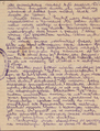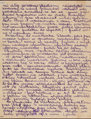 Niespostrzeżenie zbliżyłem się do niej. Dowodzący grupą był Żydem z Wiednia. Rozmawiałem z nim po niemiecku. Paniczny strach nie zastąpił [w nim?] jeszcze innych uczuć: współczucia, poczucia solidarności w położeniu w jakim znaleźliśmy się wszyscy. Pozwolił na przystanie do jego grupy. Przyłączyłem się do nich, ale w tej chwili, poznał mnię [=mnie] Niemiec schwycił za kołnierz ubrania i kopiąc, chciał odprowadzić do grupy skażonych [=skazanych] na śmierć. Uratowała mnię [=mnie] znajomość języka niemieckiego i wstawiennictwo Wiedeńczyka.